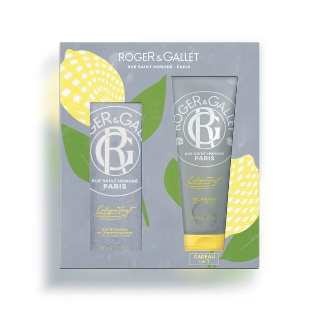 El cofre Roger & Gallet Cologne Twist es el regalo ideal para quienes buscan frescura y sofisticación en su rutina diaria. Incluye una agua de colonia de 100 ml y un gel de ducha de 200 ml, ambos con la emblemática fragancia Cologne Twist.
