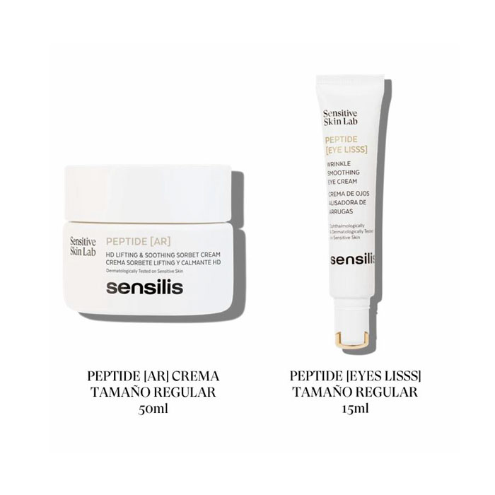 El Cofre Sensilis Peptide Ar Crema Sorbete Lifting y Calmante 50ml + Contorno de Ojos 15ml es una combinación exclusiva diseñada para combatir los signos del envejecimiento, reafirmando la piel y aportando luminosidad.