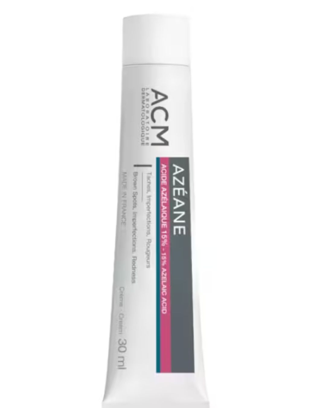 Azéane Crema Ácido Azelaico 15% de ACM es un tratamiento dermatológico multifunción diseñado para mejorar visiblemente la calidad de la piel. Formulada con un 15% de ácido azelaico, actúa eficazmente sobre imperfecciones, manchas pigmentarias, rojeces y falta de luminosidad.